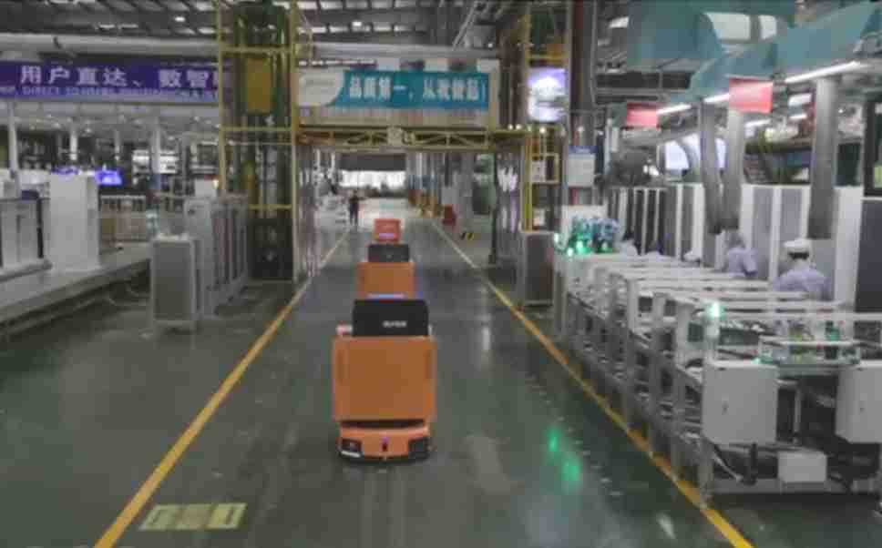 为车载冰箱物流配送打造的智能解决方案,,,包含产中物流通过潜伏举升AMR搬运至线边,,,,产后成品物流智能仓储,,流程包含产中物流智能齐套入库,,,线边安灯叫料AMR智能配送至线边,,,成品入库、、、、出库,,,通过无人堆高车机器人,,,,智能仓储管理替代人工作业管理,,实现更高存储、、、更高效率、、、更具柔性化的解决方案。。。
